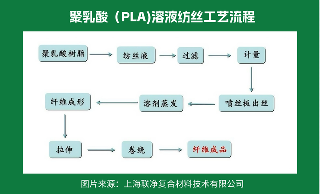 有了合适的原料 PLLA,下一步就是把固态的聚乳酸树脂变成细长的纤维。生物基聚乳酸(PLA)纤维,是聚乳酸(PLA)经过纺丝工艺(熔融纺、湿法纺、干法纺、干湿纺、静电纺等)制备而成的合成纤维。目前主流的纺丝方法有两种:熔融纺丝和溶液纺丝,熔融纺丝是最主流的工艺。